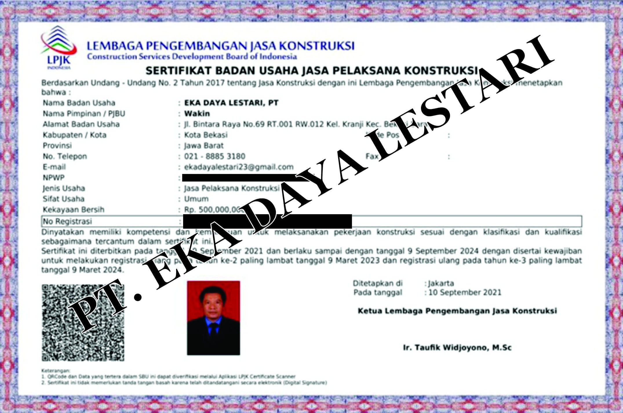 - 10: SERTIFIKAT BADAN USAHA JASA PELAKSANA KONSTRUKSI
