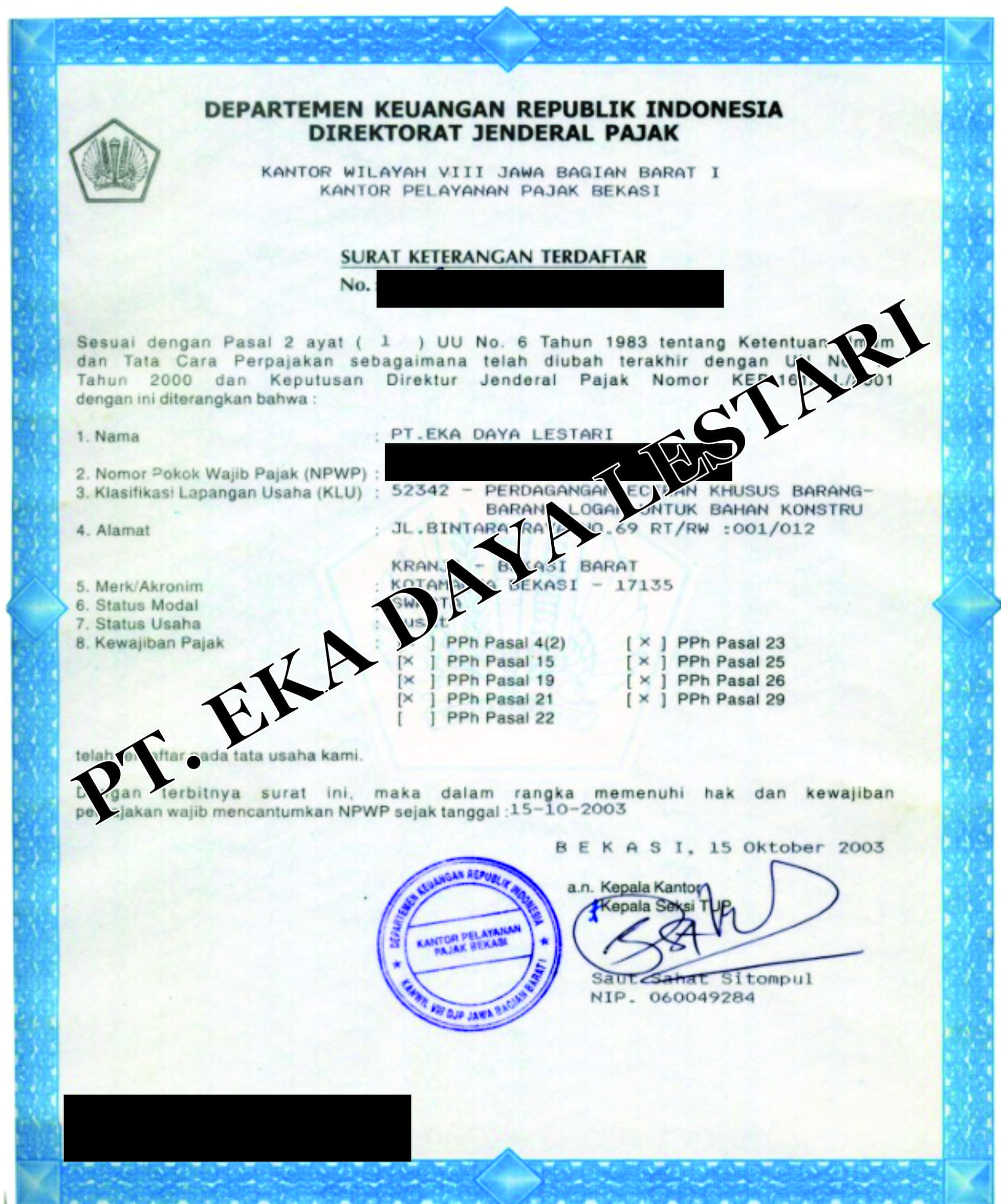 - 1: NPWP (Nomor Pokok Wajib Pajak)